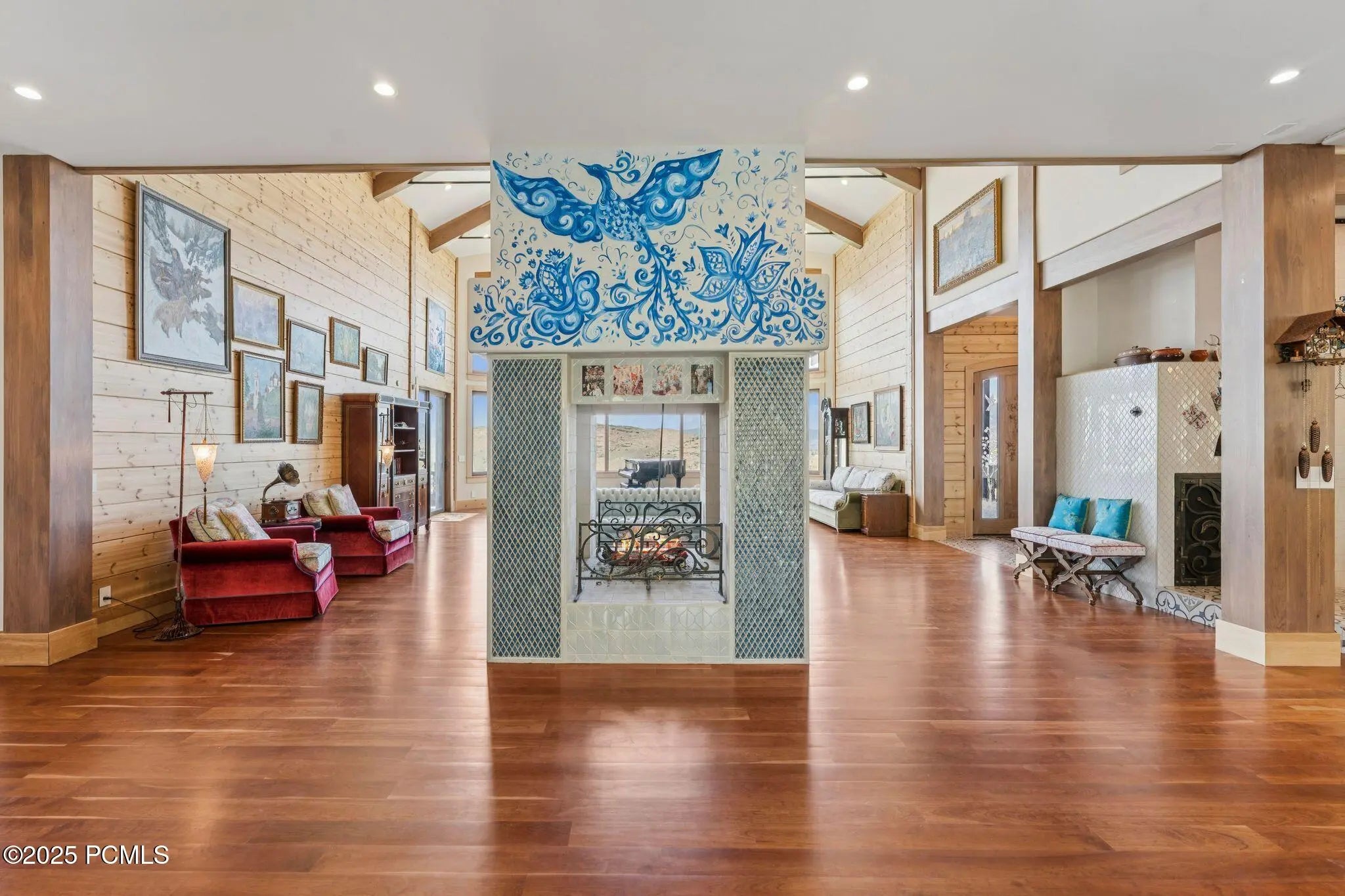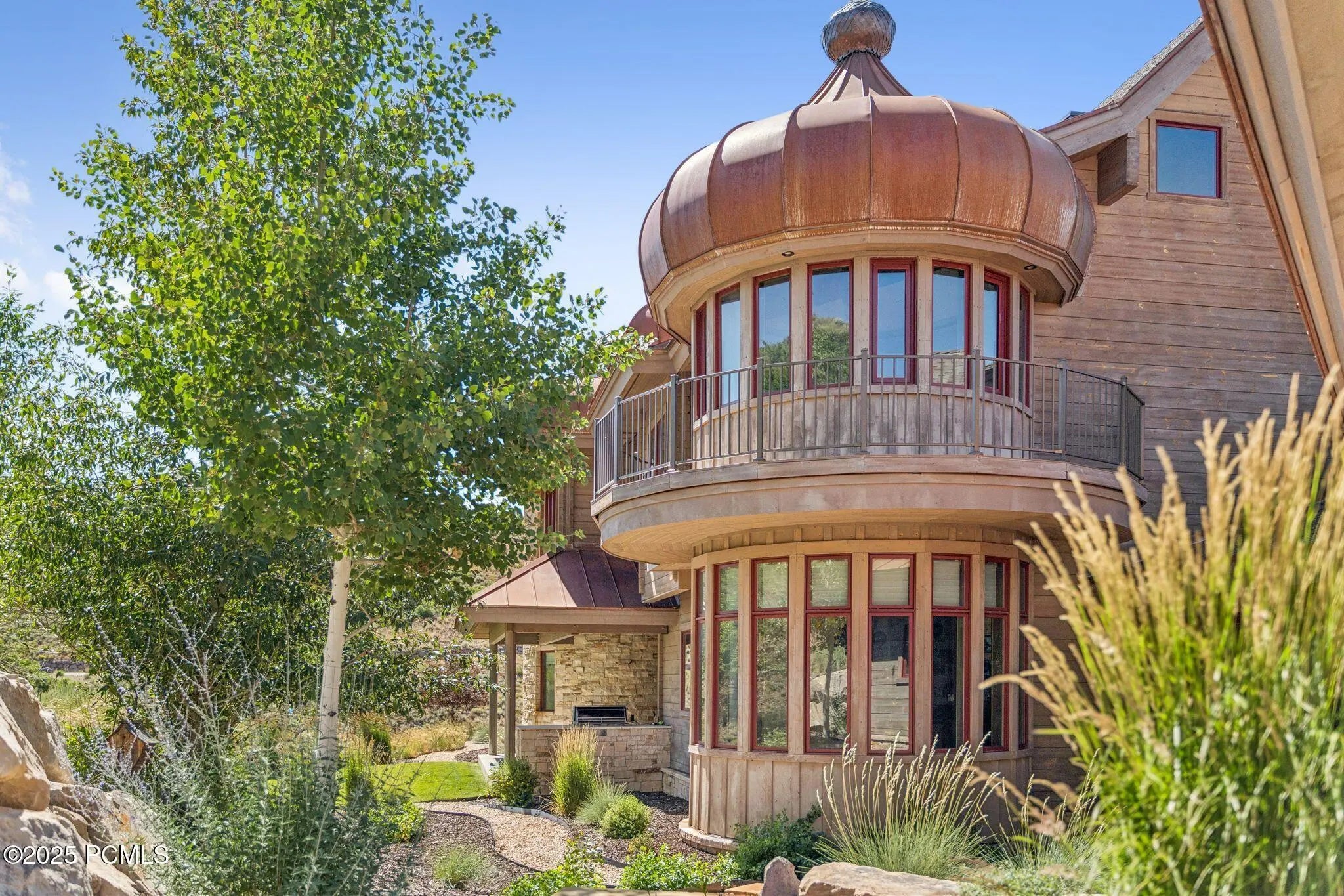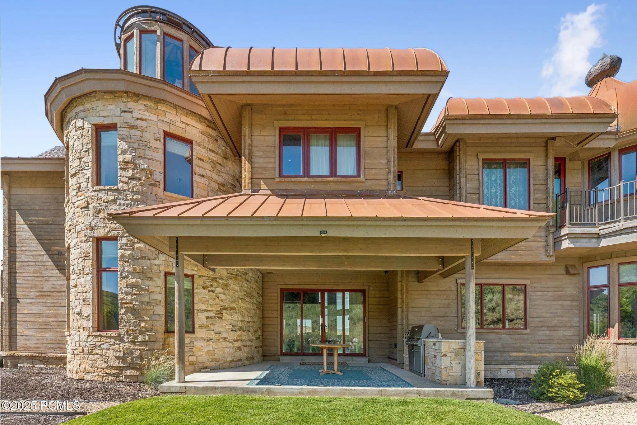 If you've ever dreamed of exploring the stars from your own home, this is the place. This extraordinary Victory Ranch residence blends old-world European artistry with the awe of a private observatory, complete with telescope and retractable dome roof. With handcrafted details including a1,000 sq ft spa, gourmet kitchen, turret library, and panoramic views, this home is both imaginative and masterfully executed. A true one-of-one. Perched on 4+ acres, this architectural masterpiece overlooks the renowned Rees Jones-designed golf course. Designed with intention, this Honka home features custom pine timber from Finland. The construction is natural, sustainable, and free from synthetic insulation. Throughout the home, custom Venetian lighting highlights the exquisite craftsmanship. The living room boasts soaring vaulted ceilings and expansive windows that frame breathtaking views. At its heart is a one-of-a-kind four-sided fireplace adorned with hand-painted designs. The elegant kitchen is a chef's dream, with custom walnut, maple, and glass cabinetry, a walnut countertop with iridescent blue inlay. Adding to its uniqueness is a custom Pechka and pizza oven, hand-built on-site. The extraordinary library is housed in a stone turret with curved walnut & maple doors and inlaid custom floors. Above it, a private observatory serves as the home's crown jewel, equipped with a telescope & a retractable dome roof. The home features 5 luxurious suites, each with unique scenic views. Outdoor living is just as impressive, with a covered patio featuring a built-in grill and multiple balconies. A two-car garage and custom dog wash station complete the home. Victory Ranch is a gated community on over 6,250 pristine acres with 4 miles of private Upper Provo River access, offering a lifestyle of unmatched adventure and serenity.