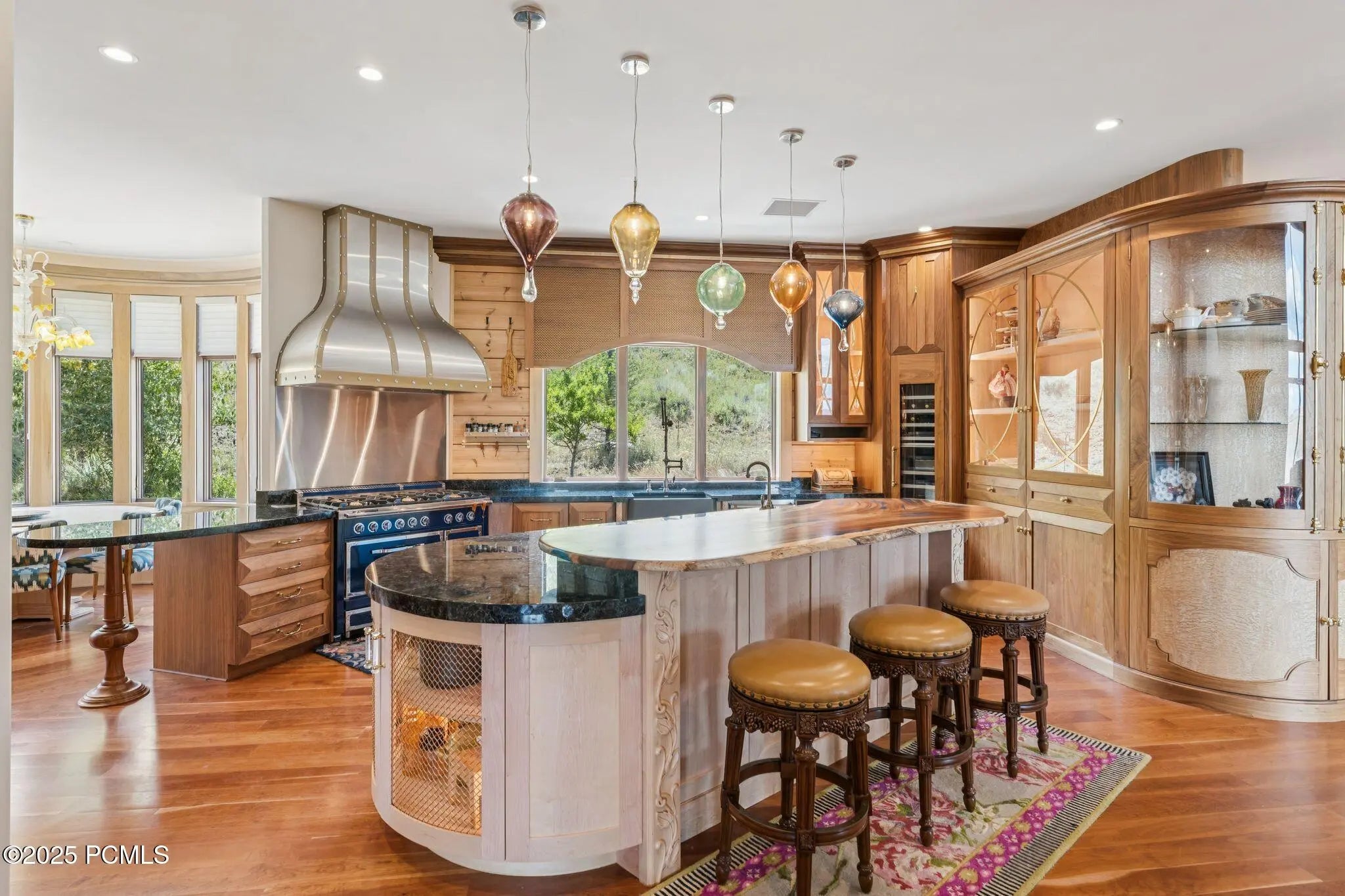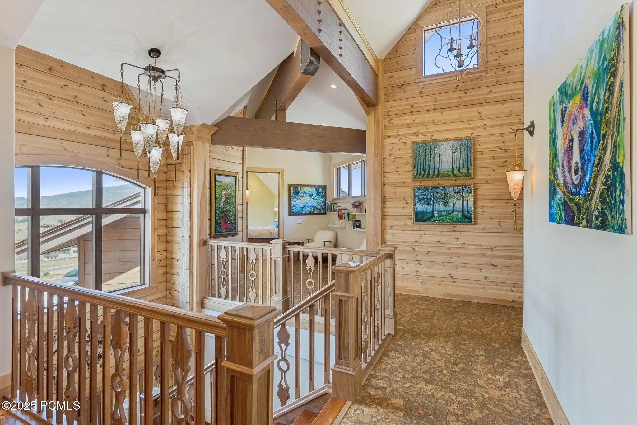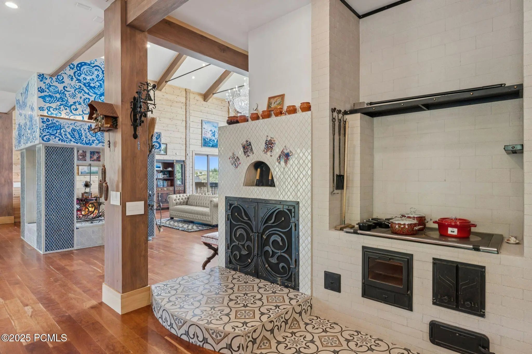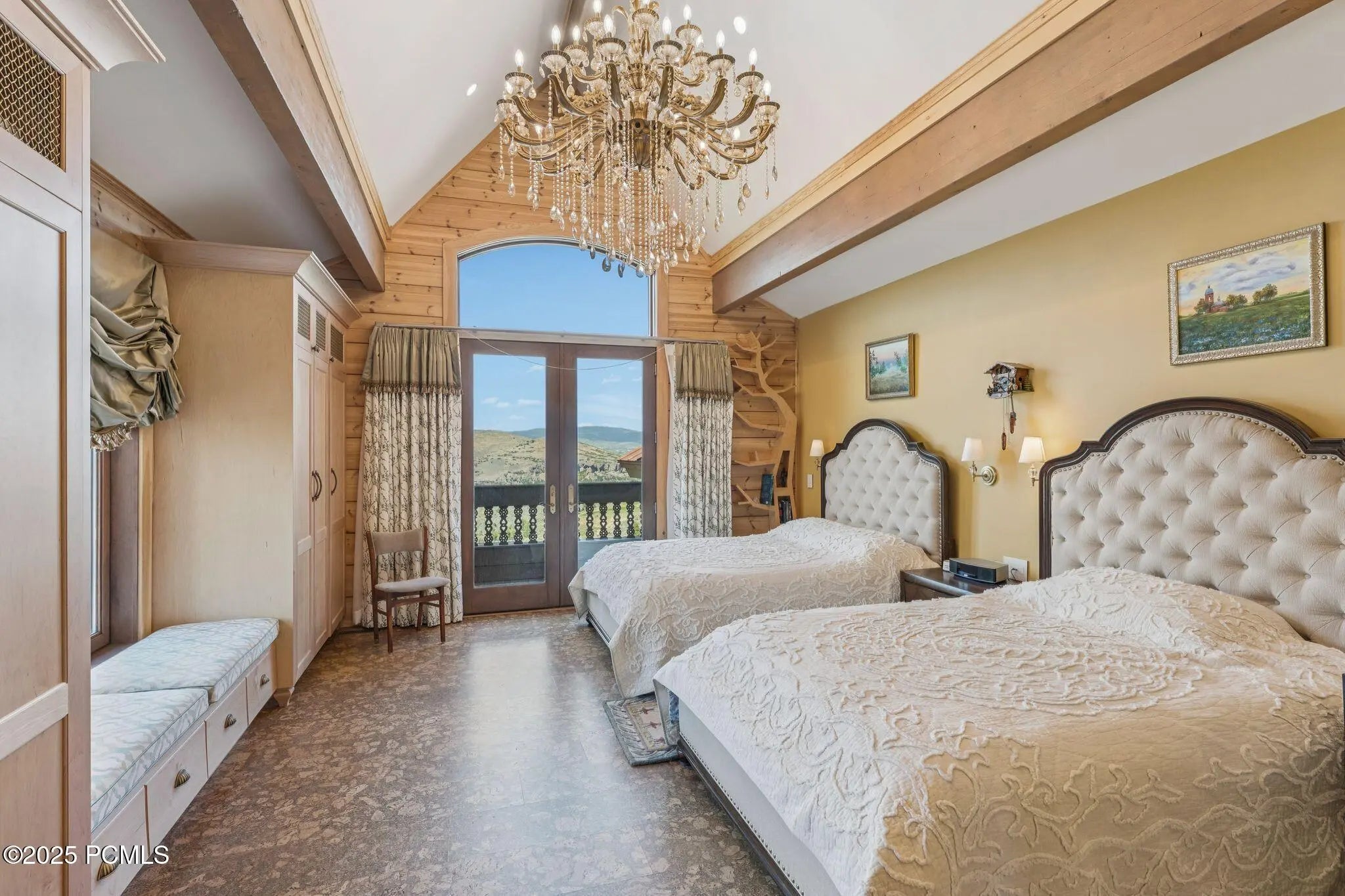 If you've ever dreamed of exploring the stars from your own home, this is the place. This extraordinary Victory Ranch residence blends old-world European artistry with the awe of a private observatory, complete with telescope and retractable dome roof. With handcrafted details including a1,000 sq ft spa, gourmet kitchen, turret library, and panoramic views, this home is both imaginative and masterfully executed. A true one-of-one. Perched on 4+ acres, this architectural masterpiece overlooks the renowned Rees Jones-designed golf course. Designed with intention, this Honka home features custom pine timber from Finland. The construction is natural, sustainable, and free from synthetic insulation. Throughout the home, custom Venetian lighting highlights the exquisite craftsmanship. The living room boasts soaring vaulted ceilings and expansive windows that frame breathtaking views. At its heart is a one-of-a-kind four-sided fireplace adorned with hand-painted designs. The elegant kitchen is a chef's dream, with custom walnut, maple, and glass cabinetry, a walnut countertop with iridescent blue inlay. Adding to its uniqueness is a custom Pechka and pizza oven, hand-built on-site. The extraordinary library is housed in a stone turret with curved walnut & maple doors and inlaid custom floors. Above it, a private observatory serves as the home's crown jewel, equipped with a telescope & a retractable dome roof. The home features 5 luxurious suites, each with unique scenic views. Outdoor living is just as impressive, with a covered patio featuring a built-in grill and multiple balconies. A two-car garage and custom dog wash station complete the home. Victory Ranch is a gated community on over 6,250 pristine acres with 4 miles of private Upper Provo River access, offering a lifestyle of unmatched adventure and serenity.