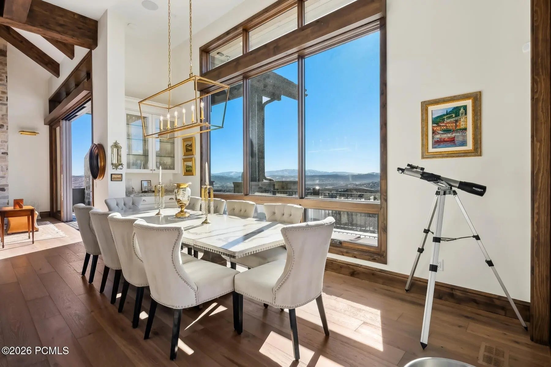 This 7,463 sq ft estate, completed in December 2024, was built by Dowie/Wing Construction with Jonathan DeGray as the architect. Thoughtfully designed with floor-to-ceiling windows and doors, the home seamlessly brings the surrounding mountain landscape indoors. The floorplan offers true main-level living.The primary suite is a private retreat featuring dual walk-in closets, a spacious private deck with hot tub, fireplace, and a generously appointed primary bath. Even the dramatic glass front door frames mountain views upon arrival.The Great Room encompasses the kitchen, hidden pantry, two fireplaces, a secondary TV lounge, and a fully enclosed glass wine wall. The kitchen showcases one of the longest breakfast bars available, enhancing both elegance and functionality. Appliances are top-tier, including Sub-Zero, Miele, and an ILVE Majestic Italian 7+ burner range.The heated three-car garage is fully equipped with water, drains, and a dog wash station.The lower level offers a second family room, exercise room, three additional en-suite bedrooms (including a bunk room), office, laundry, wet bar--and as a unique bonus, two secret rooms.Glenwild new construction home with ski and Uinta Mountain views.
