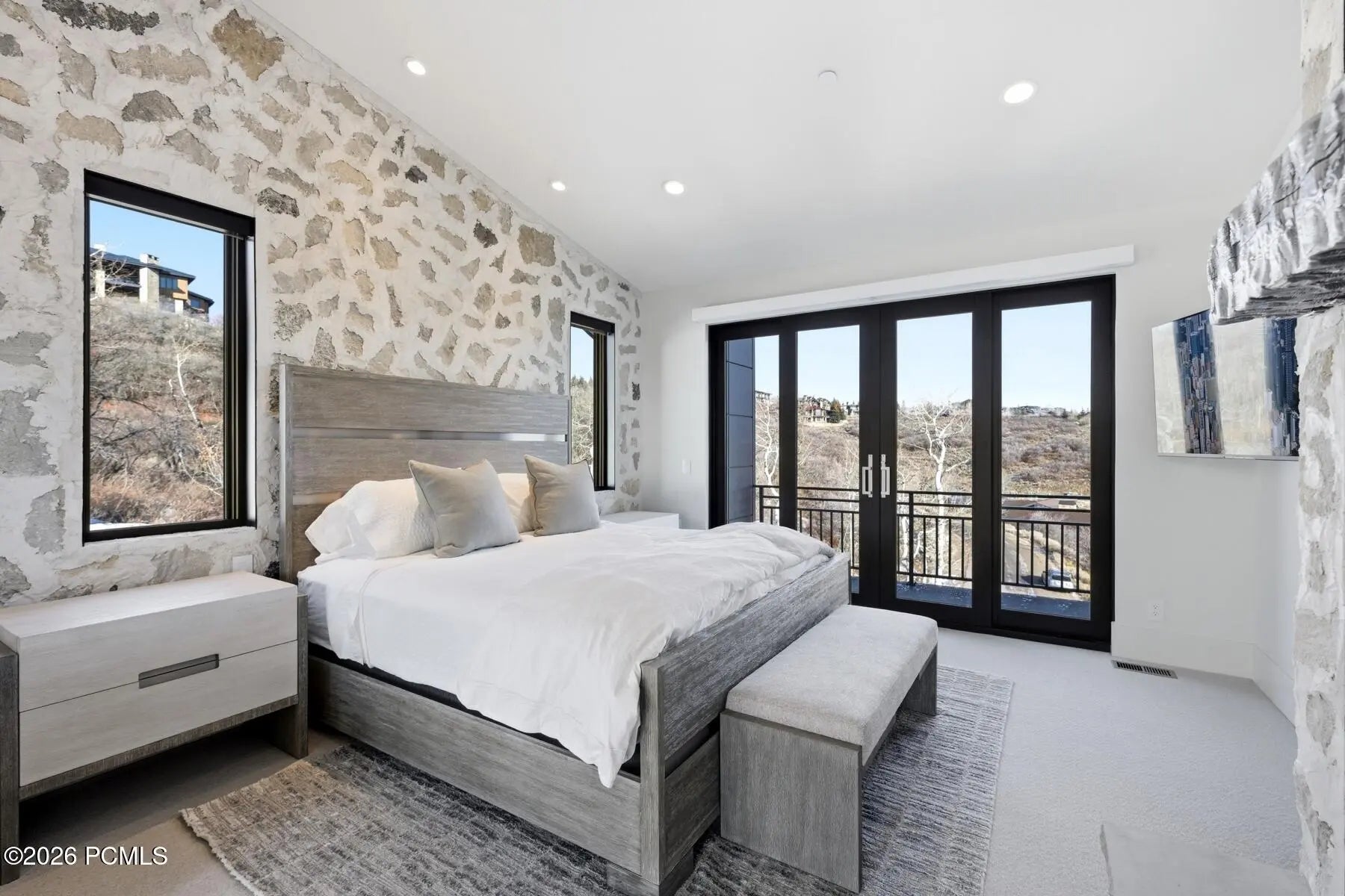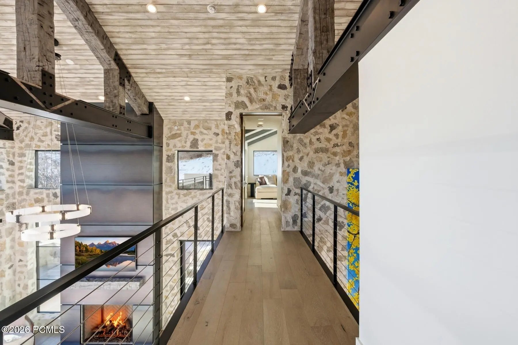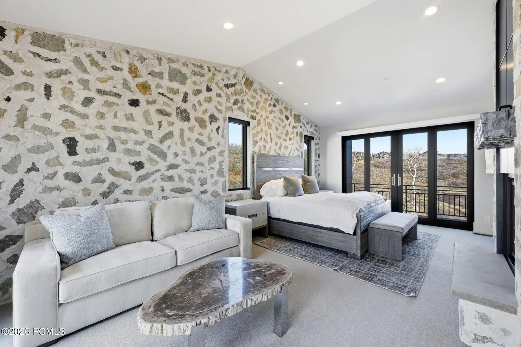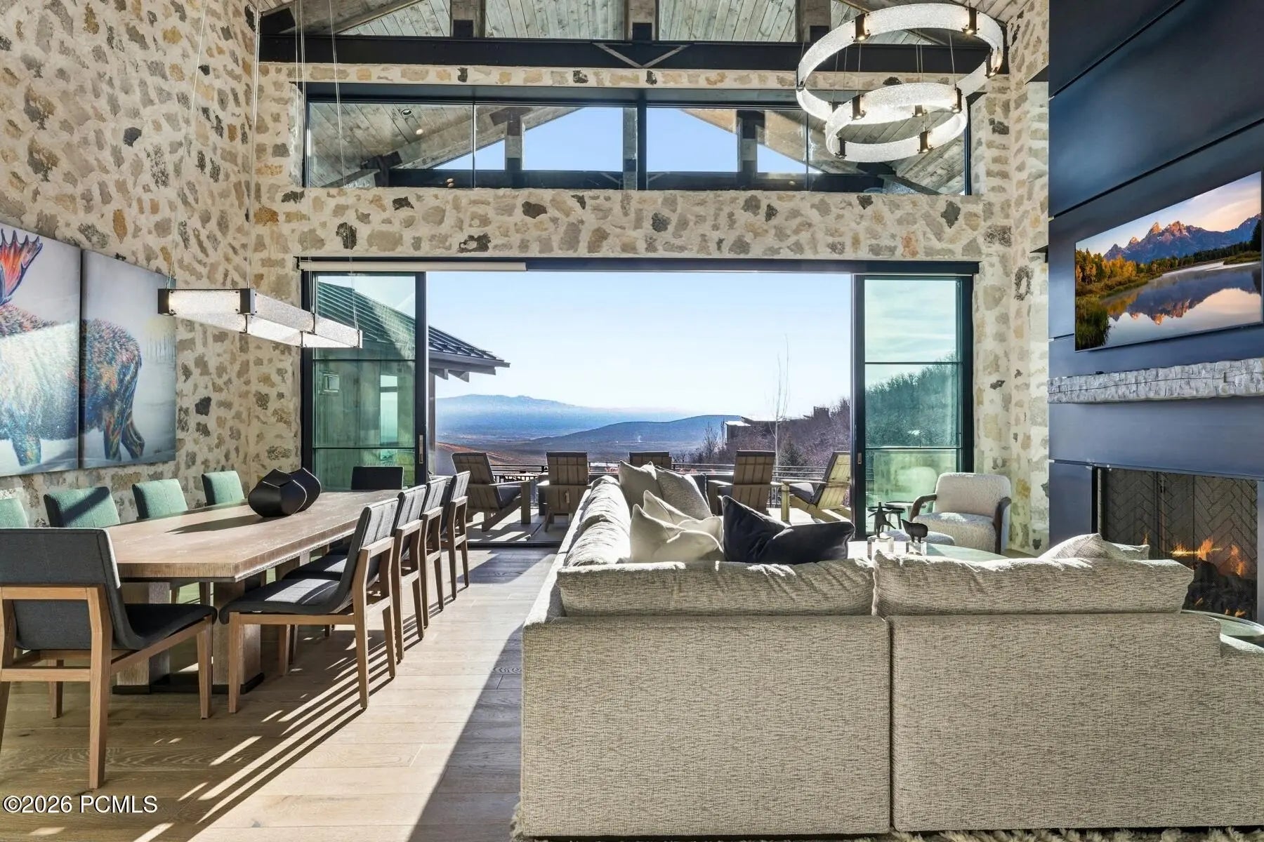 Welcome to one of the most unique custom homes in Promontory, a new Clive Bridgwater design set on three private acres in the quiet Deer Crossing neighborhood. Wrapped in hand-laid stone and barn wood with full interior and exterior radiant heat, this home is positioned to capture wide-open Uintah Mountain views that bring natural light and calm into every major space. Large floor-to-ceiling sliders open to heated outdoor living areas with a bar that connects directly to the backyard, a full outdoor barbeque area, a waterfall feature, a fire pit, and two private real-grass backyards for pets. The main level offers a thoughtful layout with three bedrooms, including a beautiful primary suite with two large walk-in closets. A standout feature is the private fitness and golf wing, where the gym and golf simulator share their own exterior entrance, allowing trainers or instructors to come and go without disturbing the main home. The gym area opens to a hot tub patio with mountain views. The lower level also includes a movie theater, guest suite, bunk room, and a temperature-controlled wine cellar holding approximately 1,800 bottles. A major standout feature is the third-level ensuite office with a dramatic bridge entry looking over the entire home. Car collectors will love the 2,000 sq ft garage with 14-foot ceilings designed for lifts and up to 8 vehicles, plus a heated wrap-around driveway for easy winter access. Surrounded by aspens and pines in a peaceful setting known for wildlife and with walking-trail access to Promontory's main Village Clubhouses, this home comes fully furnished and turn key, with a full golf membership available. This is a rare opportunity to own one of Clive Bridgwater's final custom homes in one of the most private settings in Promontory Club.